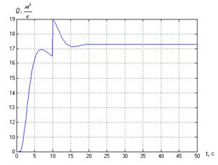 Рис.3.4. Переходный процесс в замкнутой системе без регулятора с переменным возмущающим воздействием