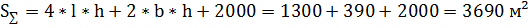 Объем студии был выбран в начале курсового проекта. Для завершения расчета необходимо посчитать общую площадь внутренних поверхностей студии, затем воспользоваться формулой Сэбина для вычисления среднего коэффициента поглощения