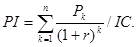 - индекс рентабельности инвестиций PI показывает отношение совокупного дохода к величине инвестиций: