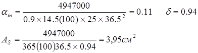 Сечение в среднем пролете: – М = 39,76 кН·м