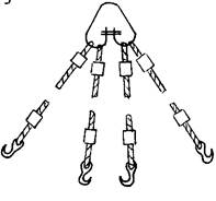 Число ветвей стропа принимают в зависимости от вида и массы поднимаемого элемента. При этом учитывают, что углы между ветвью и вертикалью не более 45°.